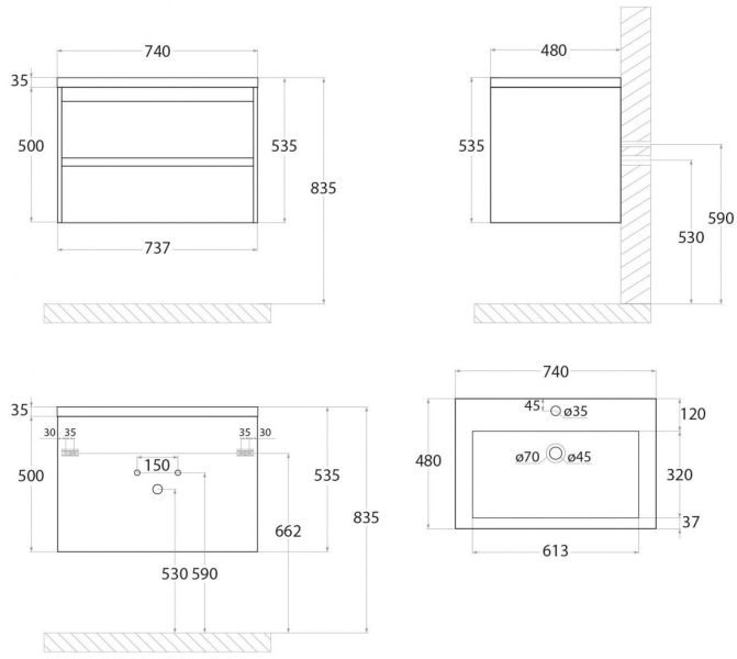 Тумба под раковину Art&Max выполнена в современном стиле и прекрасно впишется в интерьер любой ванной комнаты. Благодаря подвесной конструкции изделие не занимает много места, позволяет экономить пространство и облегчает уборку. Модель оснащена двумя выдвижными ящиками с доводчиками. Фасад изделия выполнен из ЛДСП.Тумба может использоваться вместе с раковиной AM-LAV-750-MR-A.Раковина и смеситель в комплект поставки не входят и приобретаются отдельно.Особенности: