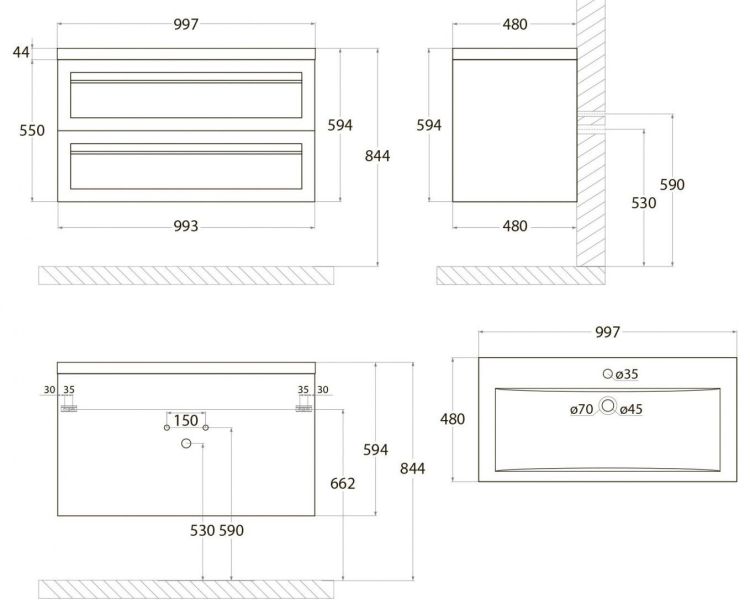• Рекомендуемая высота от пола: 844 мм