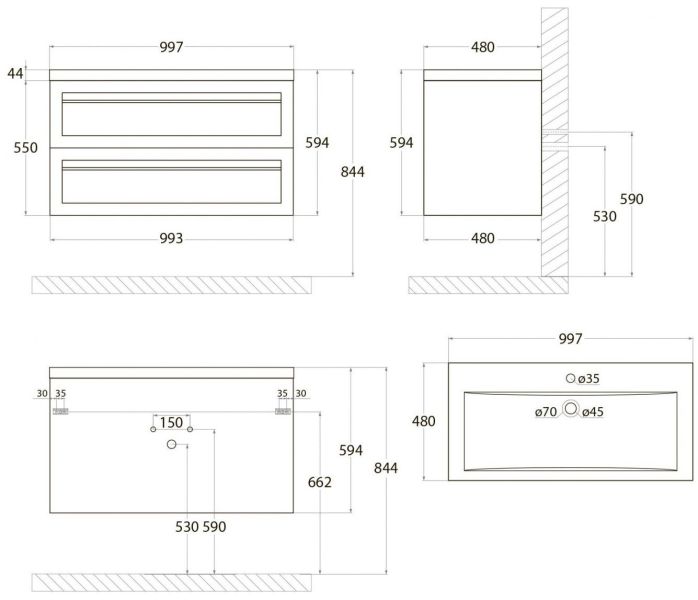 Тумба под раковину Art&Max выполнена в современном стиле и прекрасно впишется в интерьер любой ванной комнаты. Благодаря подвесной конструкции изделие не занимает много места, позволяет экономить пространство и облегчает уборку. Модель оснащена двумя выдвижными ящиками с доводчиками. Фасад изделия выполнен из МДФ.Тумба может использоваться вместе с раковиной AM-LAV-1000-MR-A.Раковина и смеситель в комплект поставки не входят и приобретаются отдельно.Особенности: