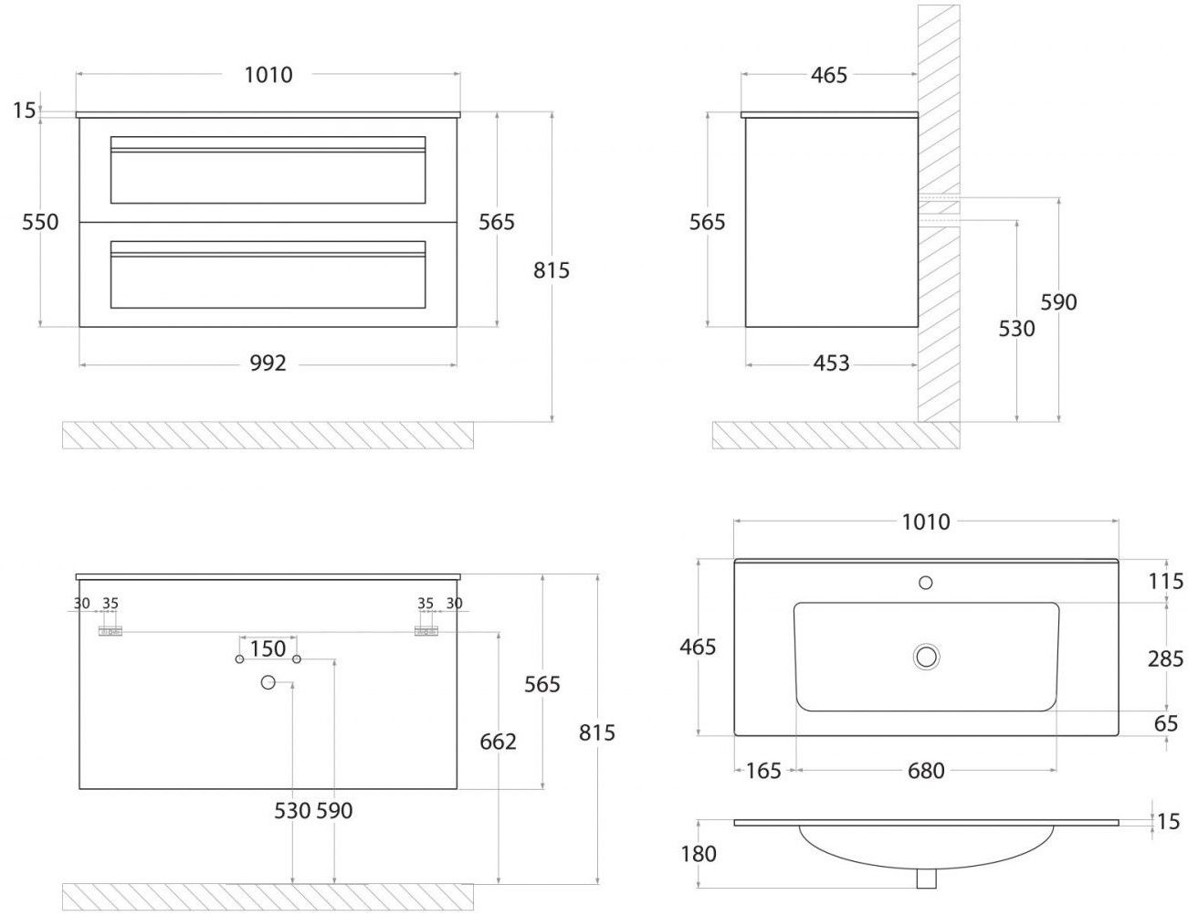 Подвесная тумба под раковину Art&Max Platino 100см серый матовый AM-Platino-1000-2C-SO-GM-Cer