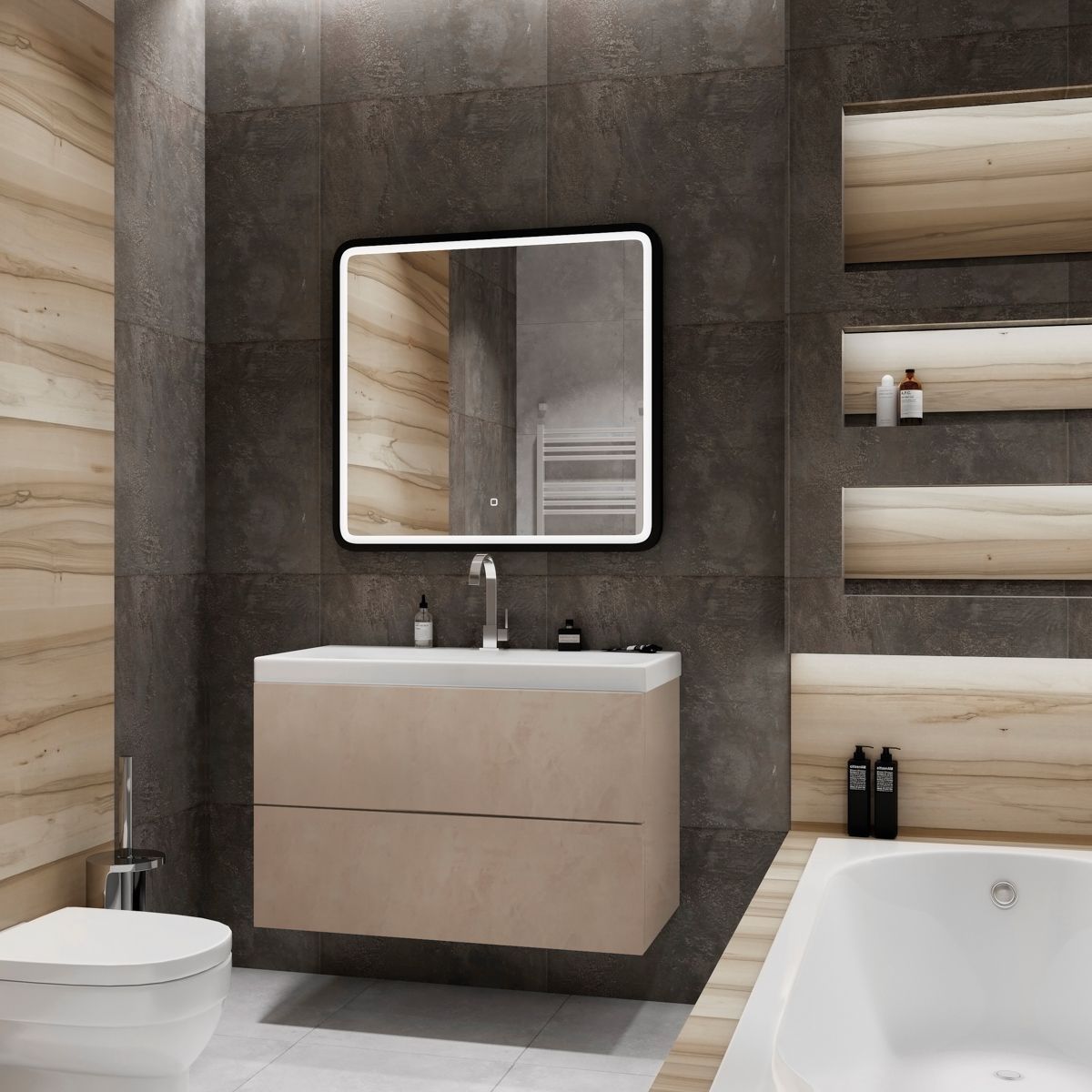Подвесная тумба под раковину Art&Max Verona Push 90см камень светлый AM-Verona-Push-900-2C-SO-St