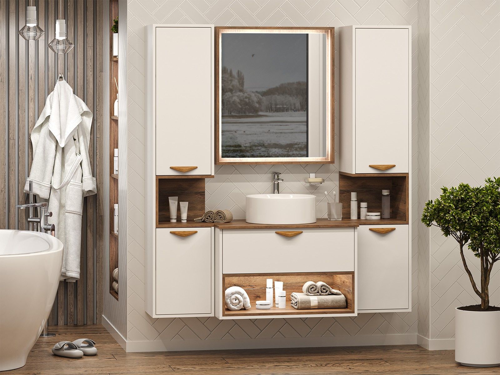 Подвесная тумба под раковину Brevita Bergen BER-07080-19-01-1Я с подсветкой 80см дуб Галифакс олово/белый купить