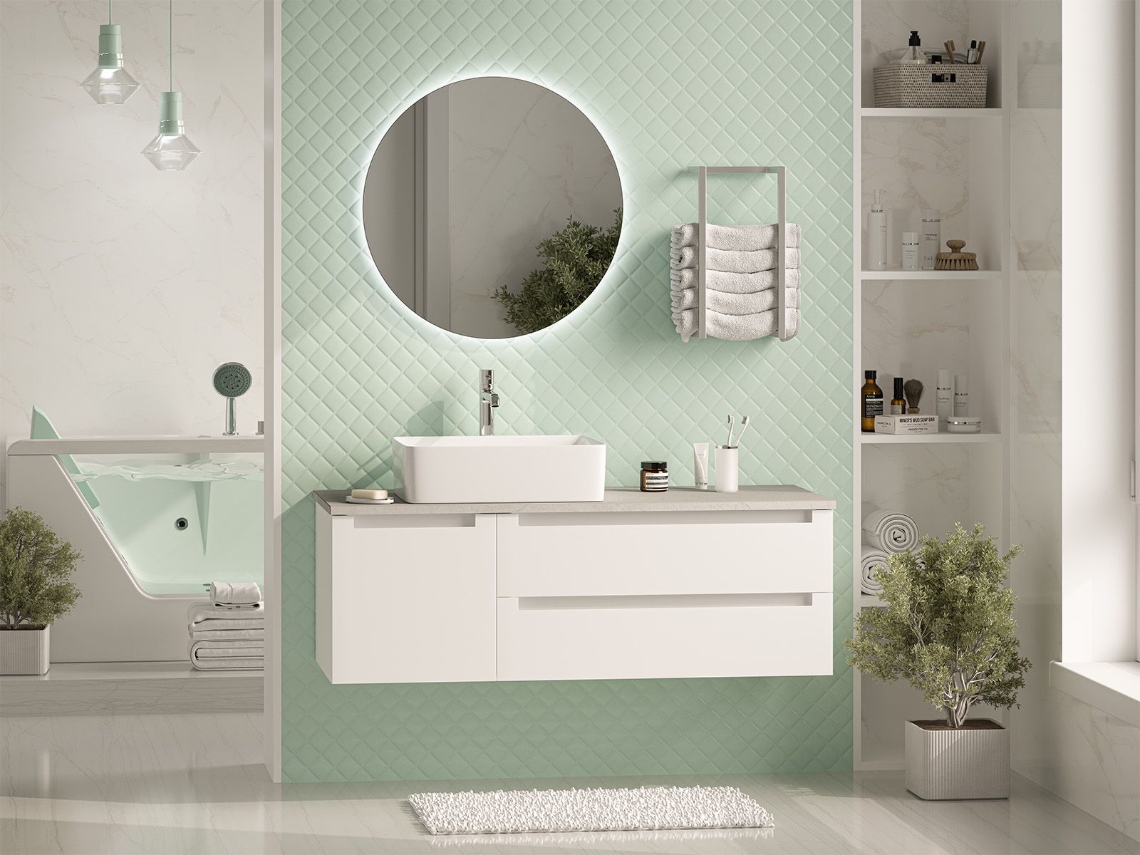 Подвесная тумба в ванную комнату – это не просто элемент мебели, а подлинный акцент в интерьере, который сочетает в себе функциональность и стиль. Она придаёт помещению лёгкость и воздушность, освобождая пространство на полу и создавая иллюзию большего объёма.Функциональные особенности таких тумб варьируются от наличия выдвижных ящиков до встроенных систем хранения, которые помогают организовать пространство ванной комнаты. Важным аспектом является также возможность выбора различных цветовых решений и отделок, что позволяет гармонично вписать тумбу в любой интерьер – от классического до ультрасовременного.С помощью подвесной тумбы ванная комната становится не только более удобной, но и эстетически привлекательной, создавая атмосферу уюта и роскоши.