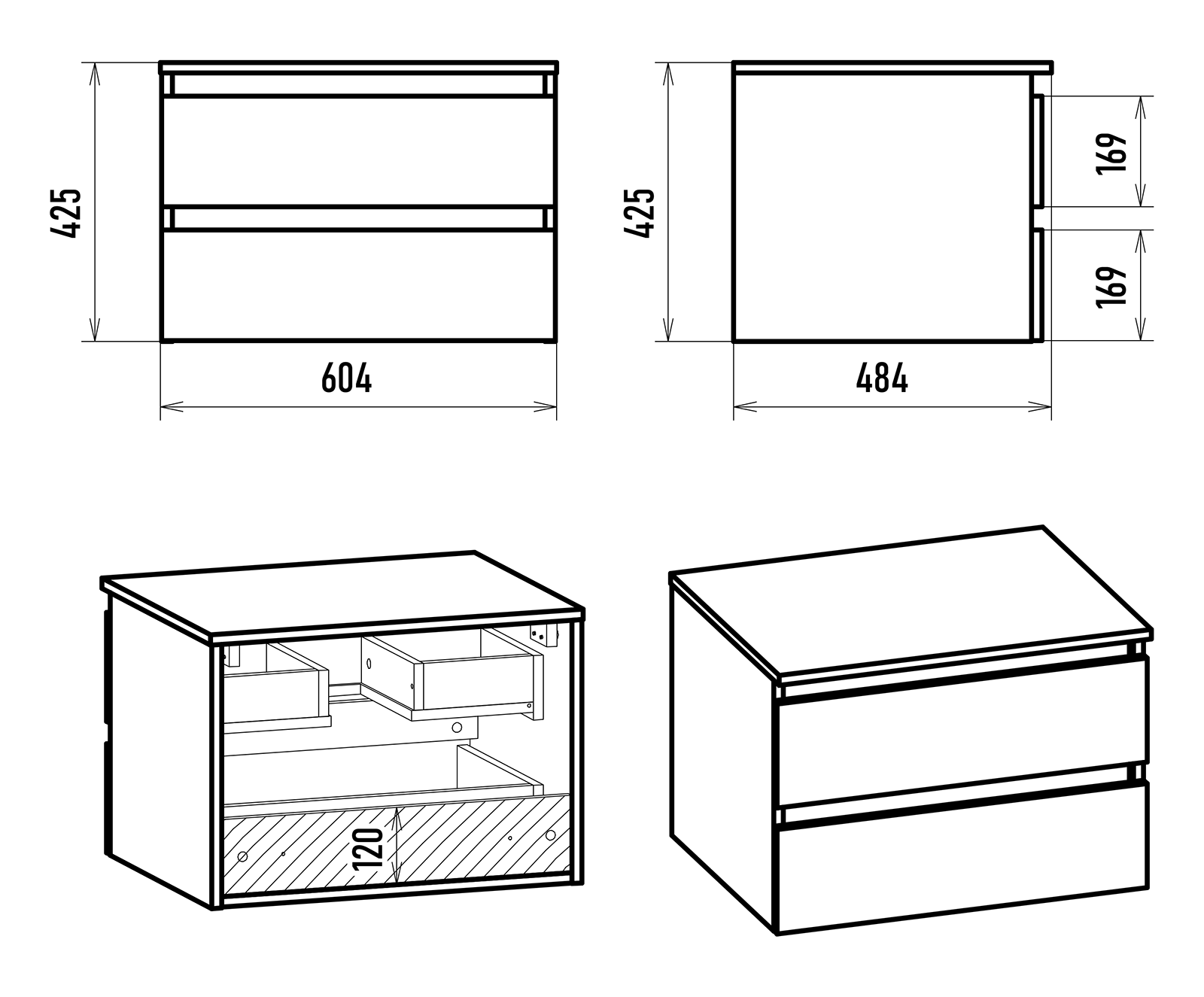 Подвесная тумба под раковину Brevita Dakota DAK-09060-19/02-2Я 60см дуб Галифакс олово/чёрный купить