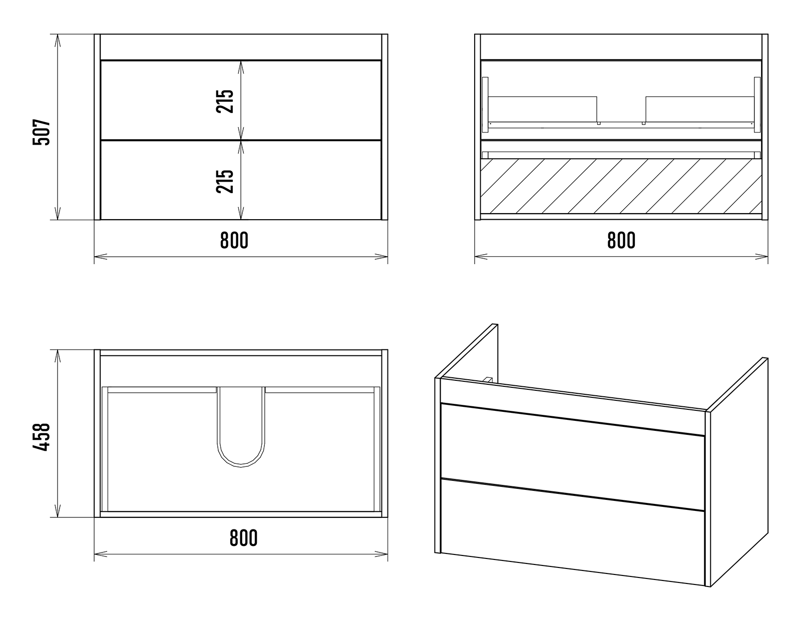 Подвесная тумба под раковину Brevita Monsour MON-09080-0102Я 80см дуб Галифакс олово/чёрный кварц