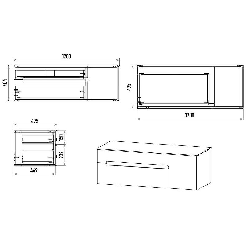 Габариты корпуса тумбы (ШхВхГ): 1200х404х495 мм.