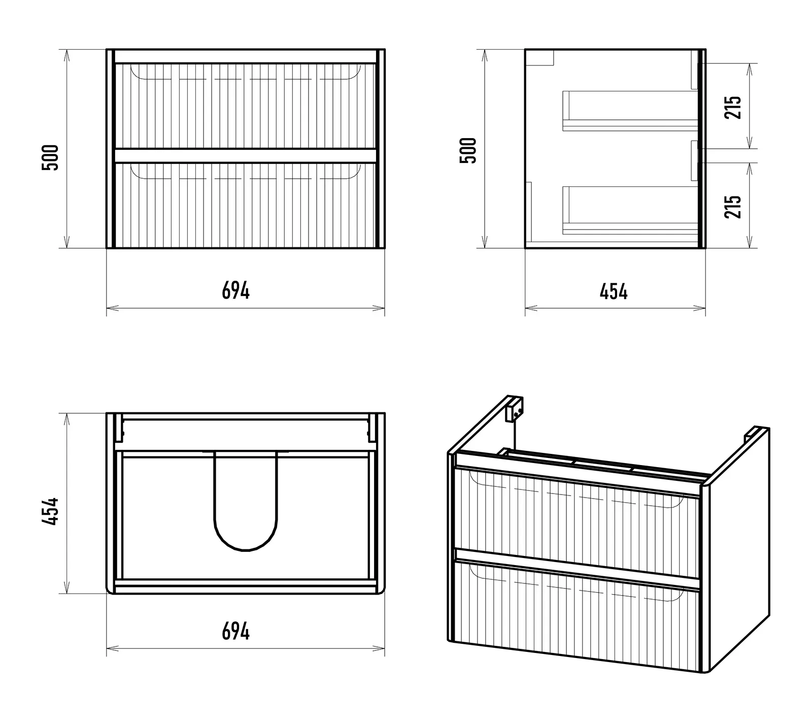 Размер мебели, мм (ш/г/в): 694x454x500