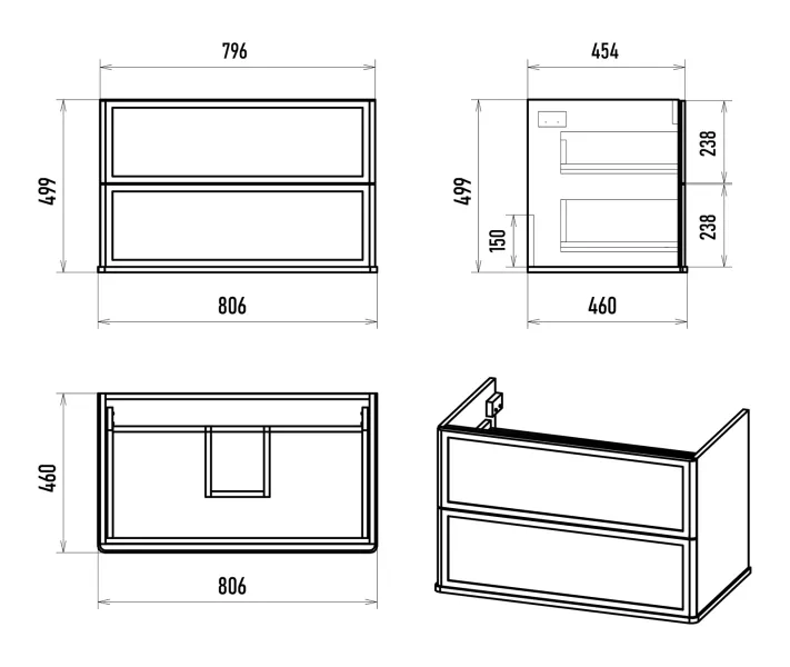 В комплекте с тумбой идёт раковина ONDA 80 см