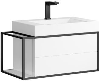 Подвесная тумба под раковину Clarberg Logic 80 R LOG0108R с двумя ящиками и дополнительной консолью для полотенец справа. Главная особенность коллекции - это применение алюминиевого анодированного профиля в чёрном цвете.Технические данные:Цвет: белый.