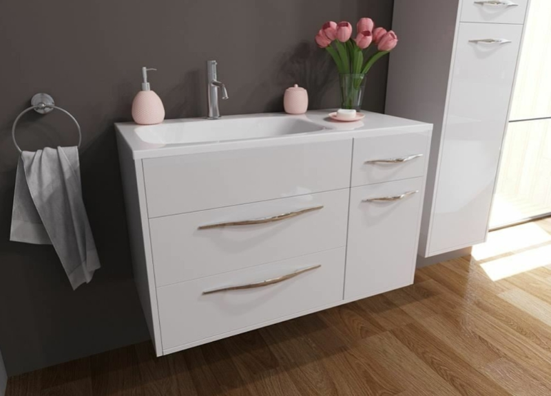 Коллекция Barcelona выполнена в стиле модерн. Плавные линии и формы подчеркивают элегантность комплекта, а разнообразие комплектации позволяет использовать мебель в качестве маркера вашего собственного стиля. За счет раковины с крылом коллекция Barcelona более вместительная и удобная. В подвесной тумбе располагаются 3 ящика и дополнительное пространство с распашной дверцей. Два ящика предполагают размещение более крупных вещей, а один ящик для мелких предметов. В секции с распашной дверцей можно разместить бытовую химиюТумба белого цвета по умолчанию. Возможна покраска по палитре RAL.