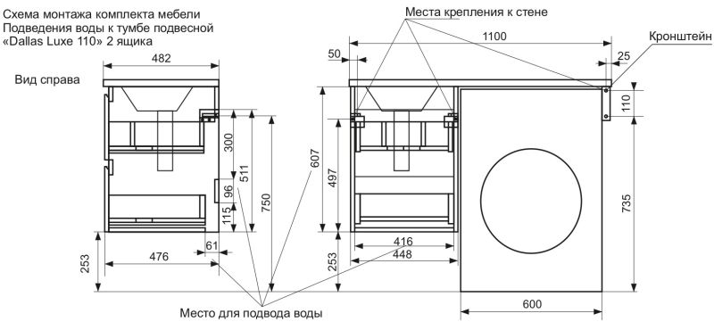 Подвесная тумба под раковину Эстет Dallas Luxe ФР-00002016 Л/П 110см два ящика белый