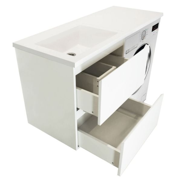 Коллекция мебели для ванной комнаты Dallas Luxe покоряет своей удивительной простой и функциональностью. Тумба укомплектована раковиной из литьевого мрамора с удобной чашей, стиральная машина устанавливается под столешницей. Широкий и вместительный ящик предназначен для крупных предметов. Подвесная система монтажа позволяет более эффективно использовать пространство, не мешает уборке в ванной комнате.
