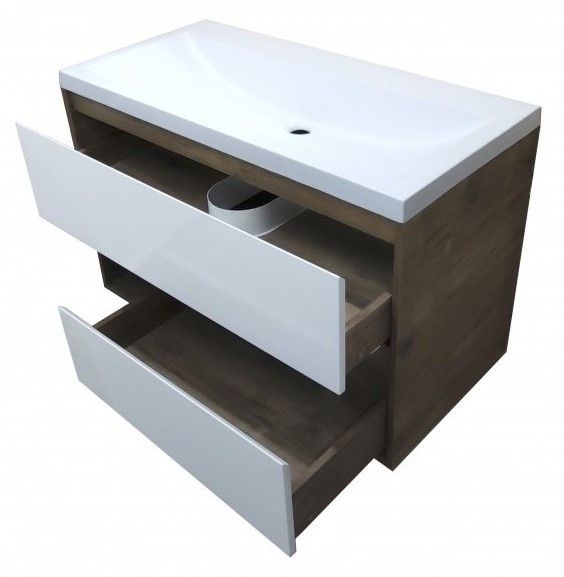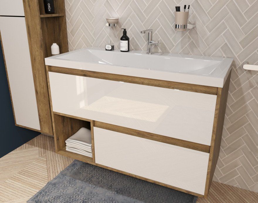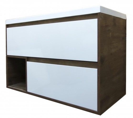 Подвесная тумба под раковину Эстет Monaco Wood ФР-00010676 100см два ящика белый/дуб рустикальный