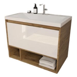 Подвесная тумба под раковину Эстет Monaco Wood ФР-00010682 80см один ящик белый/дуб рустикальный купить