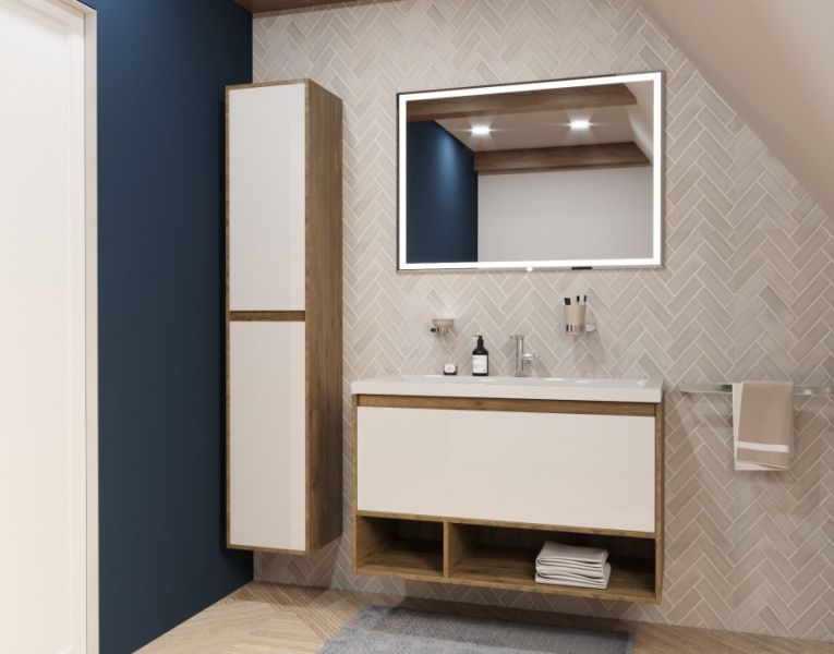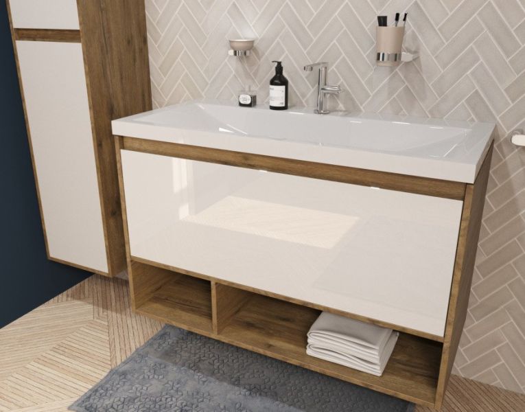 Подвесная тумба под раковину Эстет Monaco Wood ФР-00011317 100см один ящик белый/дуб рустикальный купить