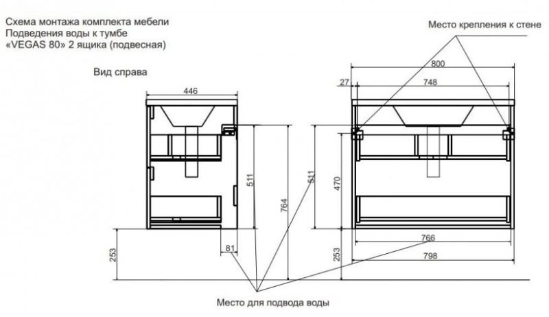Подвесная тумба под раковину Эстет Vegas ФР-00003488 80см два ящика белый