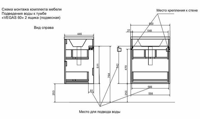 Подвесная тумба под раковину Эстет Vegas ФР-00003489 60см два ящика белый купить