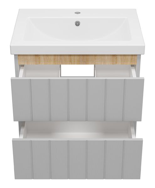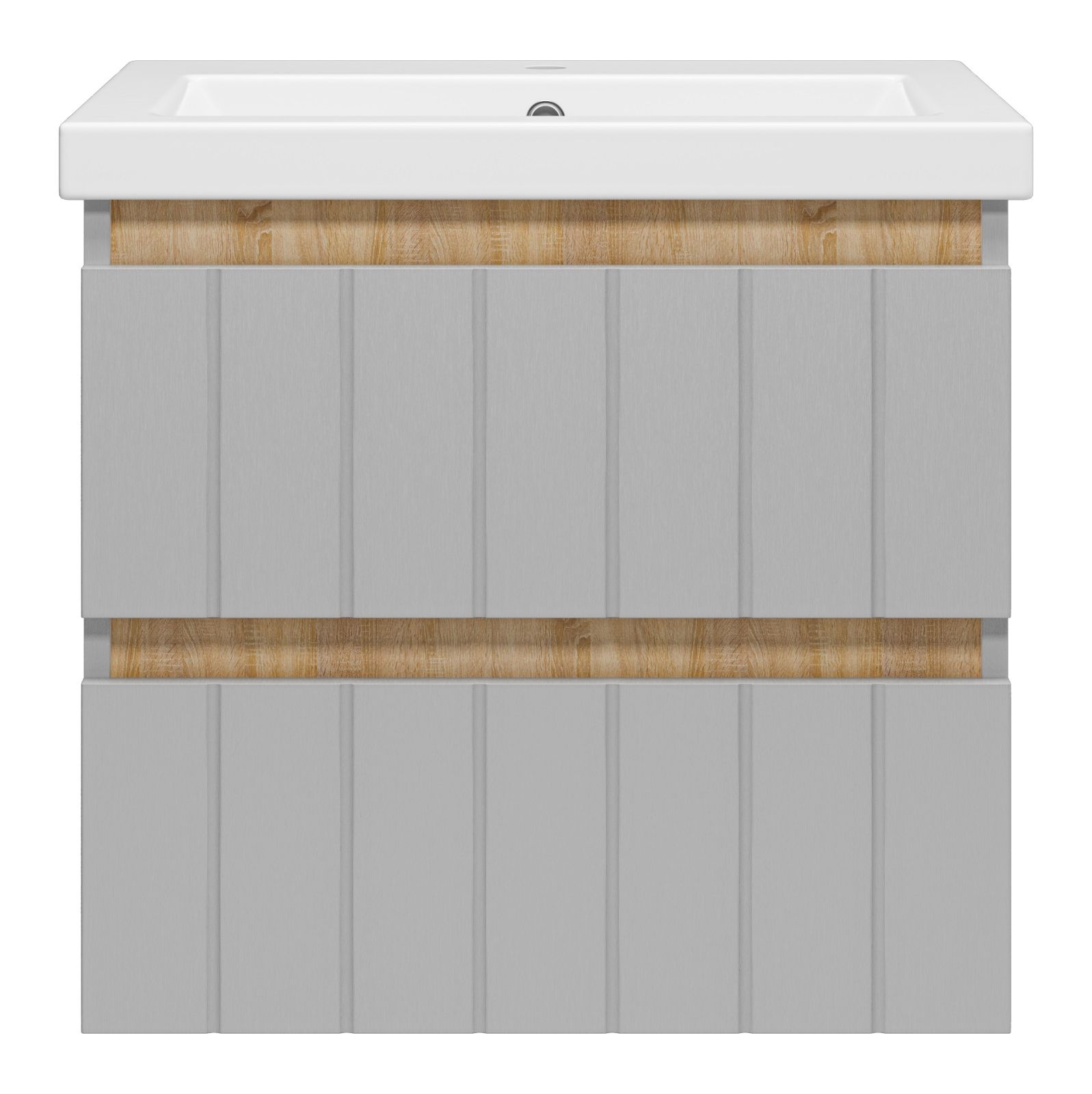 Подвесная тумба под раковину Misty Грэй 60см серый металлик/дуб Сонома