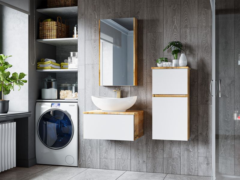 Подвесная тумба под раковину Misty Ива 60см белый/дуб Вотан