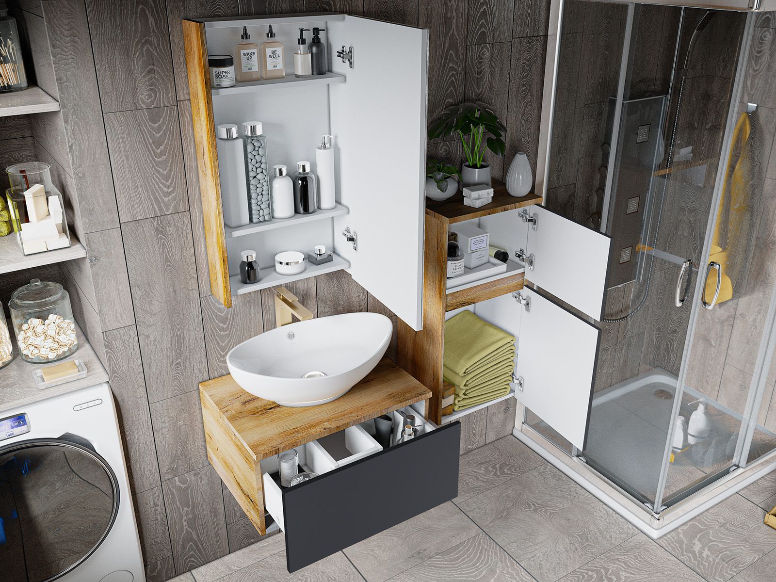 Подвесная тумба под раковину Misty Ива 70см графит/дуб Вотан