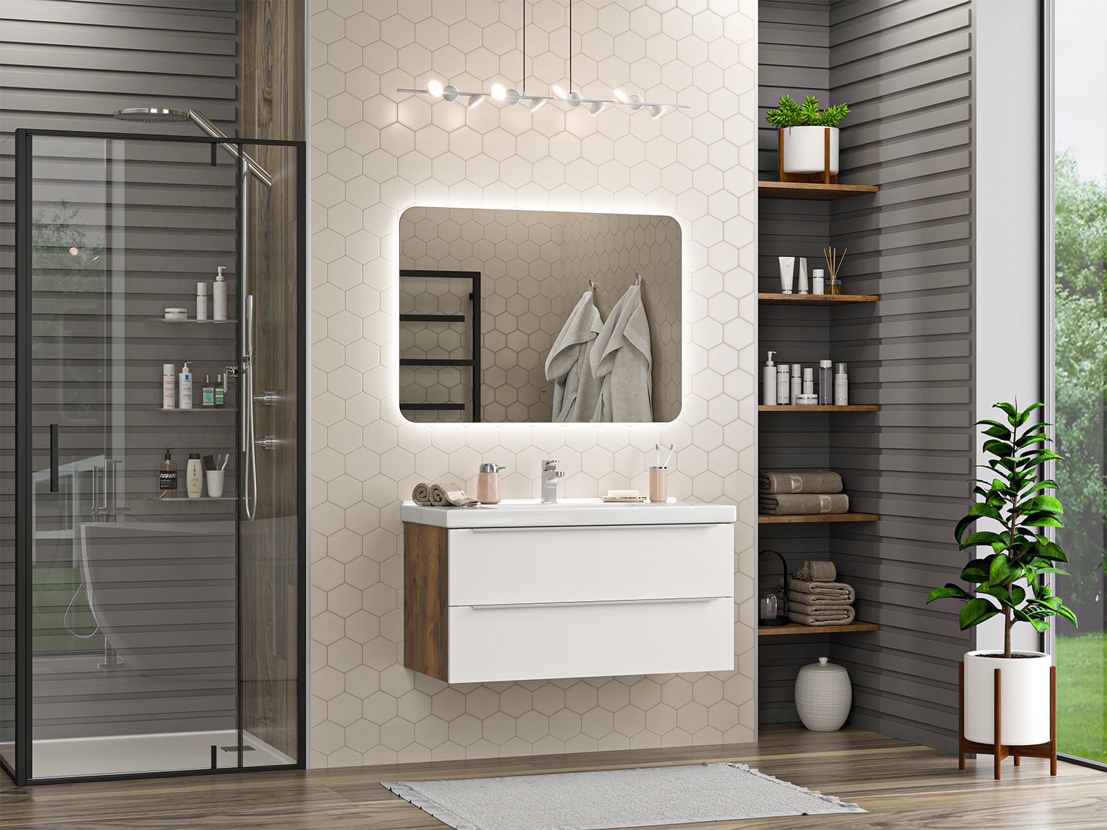 Подвесная тумба в ванную комнату – это не просто элемент мебели, а подлинный акцент в интерьере, который сочетает в себе функциональность и стиль. Она придаёт помещению лёгкость и воздушность, освобождая пространство на полу и создавая иллюзию большего объёма.Функциональные особенности таких тумб варьируются от наличия выдвижных ящиков до встроенных систем хранения, которые помогают организовать пространство ванной комнаты. Важным аспектом является также возможность выбора различных цветовых решений и отделок, что позволяет гармонично вписать тумбу в любой интерьер – от классического до ультрасовременного.С помощью подвесной тумбы ванная комната становится не только более удобной, но и эстетически привлекательной, создавая атмосферу уюта и роскоши.