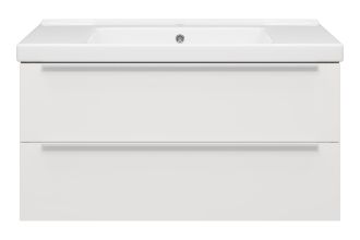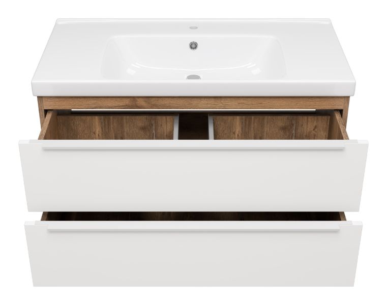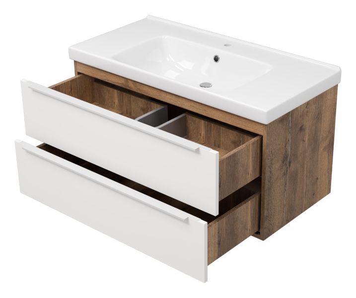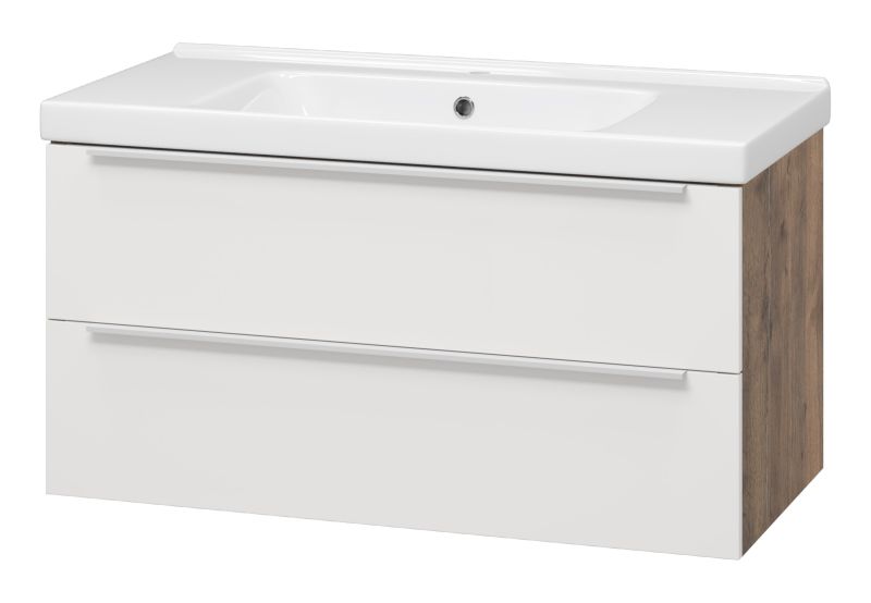 Подвесная тумба под раковину Misty Карат 100см белый/дуб Галифакс олово