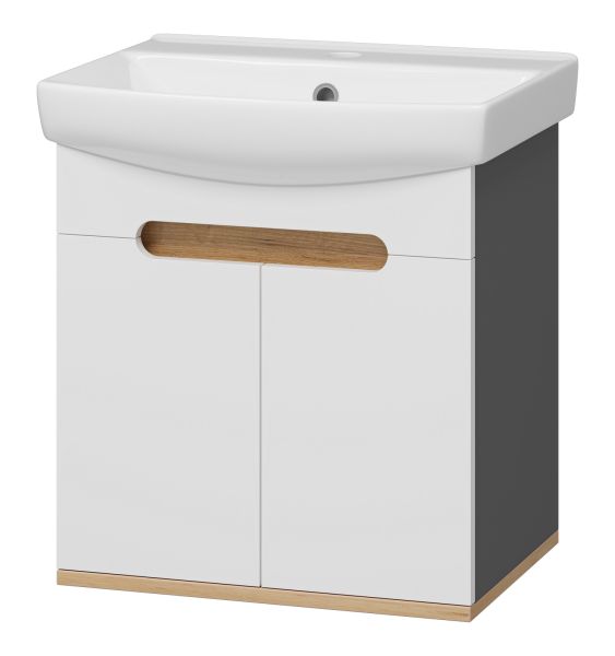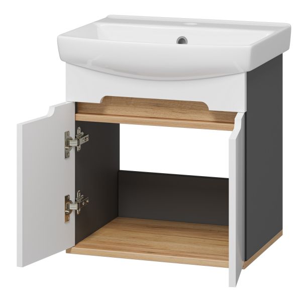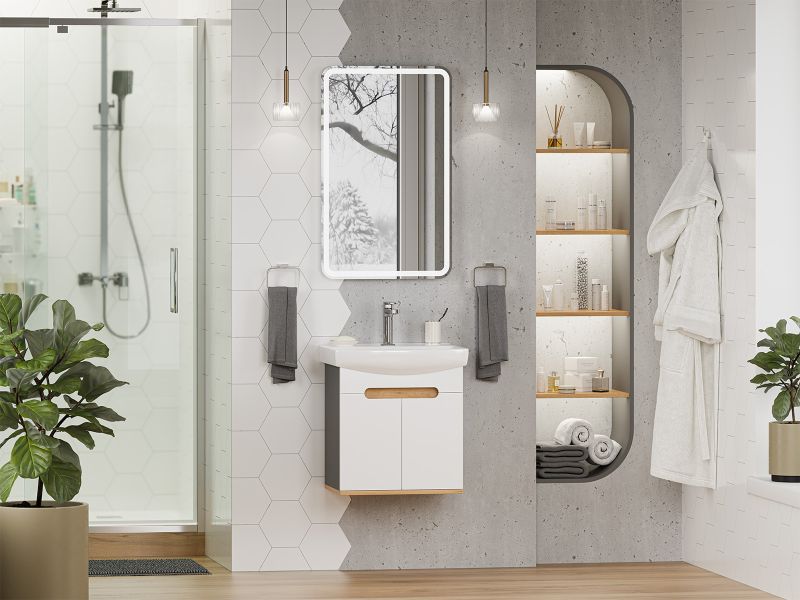 Подвесная тумба под раковину Misty Сканди 50см белый/дуб крафт золотой/антрацит