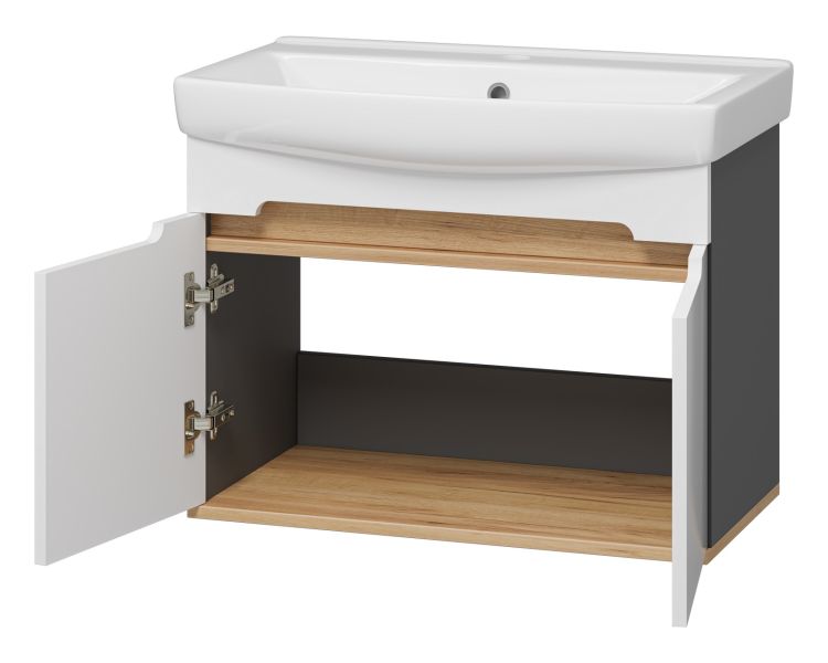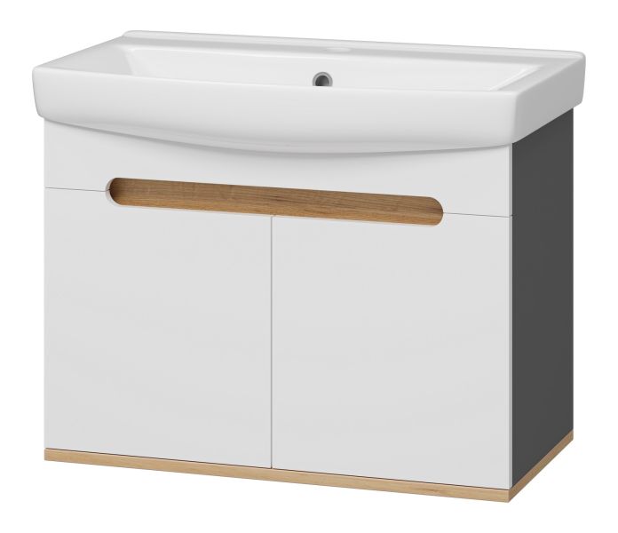 Подвесная тумба под раковину Misty Сканди 70см белый/дуб крафт золотой/антрацит