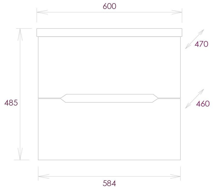 Размеры тумбы без учета раковины 59х46х46 см.