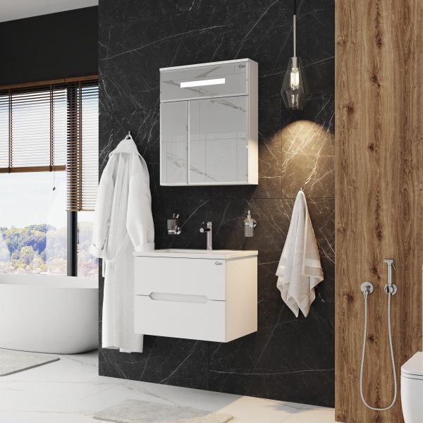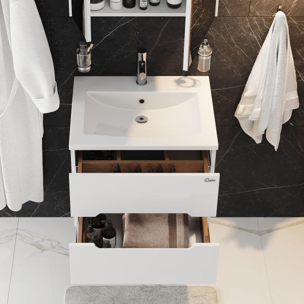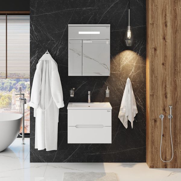Подвесная тумба под раковину Onika Айленд 60 сочетает в себе стильный минималистичный дизайн, белую глянцевую поверхность и высочайшее качество исполнения.