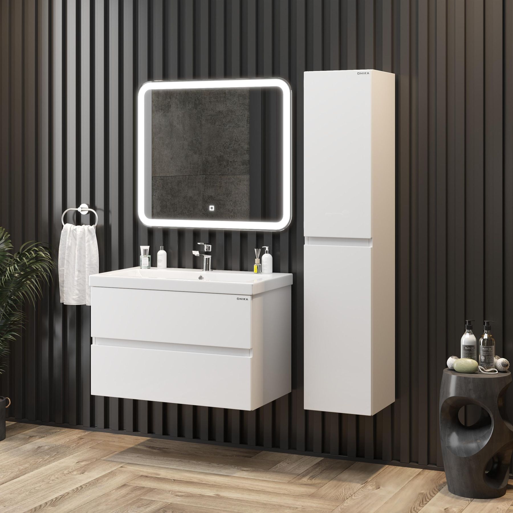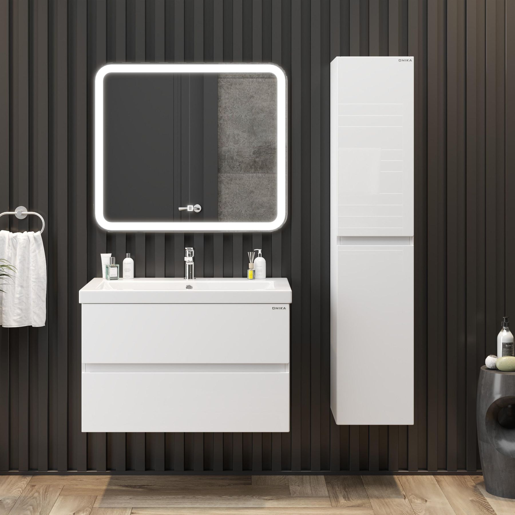 Подвесная тумба для ванной комнаты Onika Эвада 80 сочетает в себе стильный минималистичный дизайн, белую глянцевую поверхность и высочайшее качество исполнения.