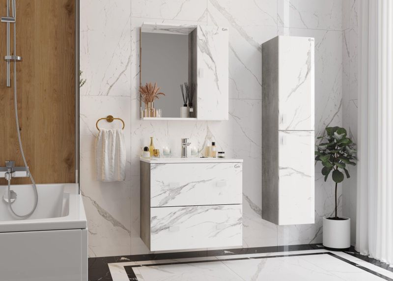 Подвесная тумба Onika Марбл 65 станет стильным и функциональным элементом пространства современной ванной комнаты. Спроектированная дизайнерами в минималистичном облике, тумба отражает самые актуальные расцветки сезона - бетон и мрамор.