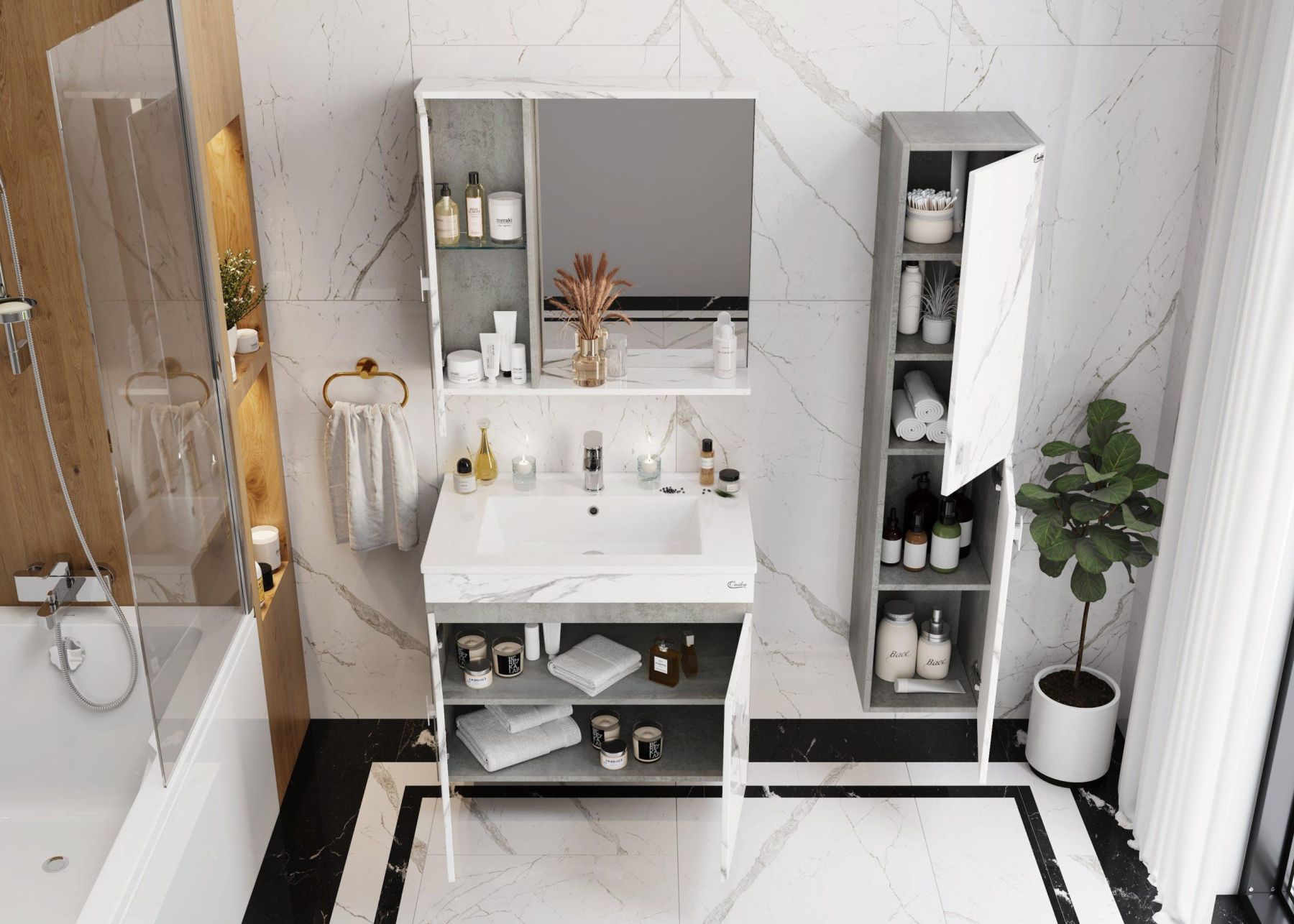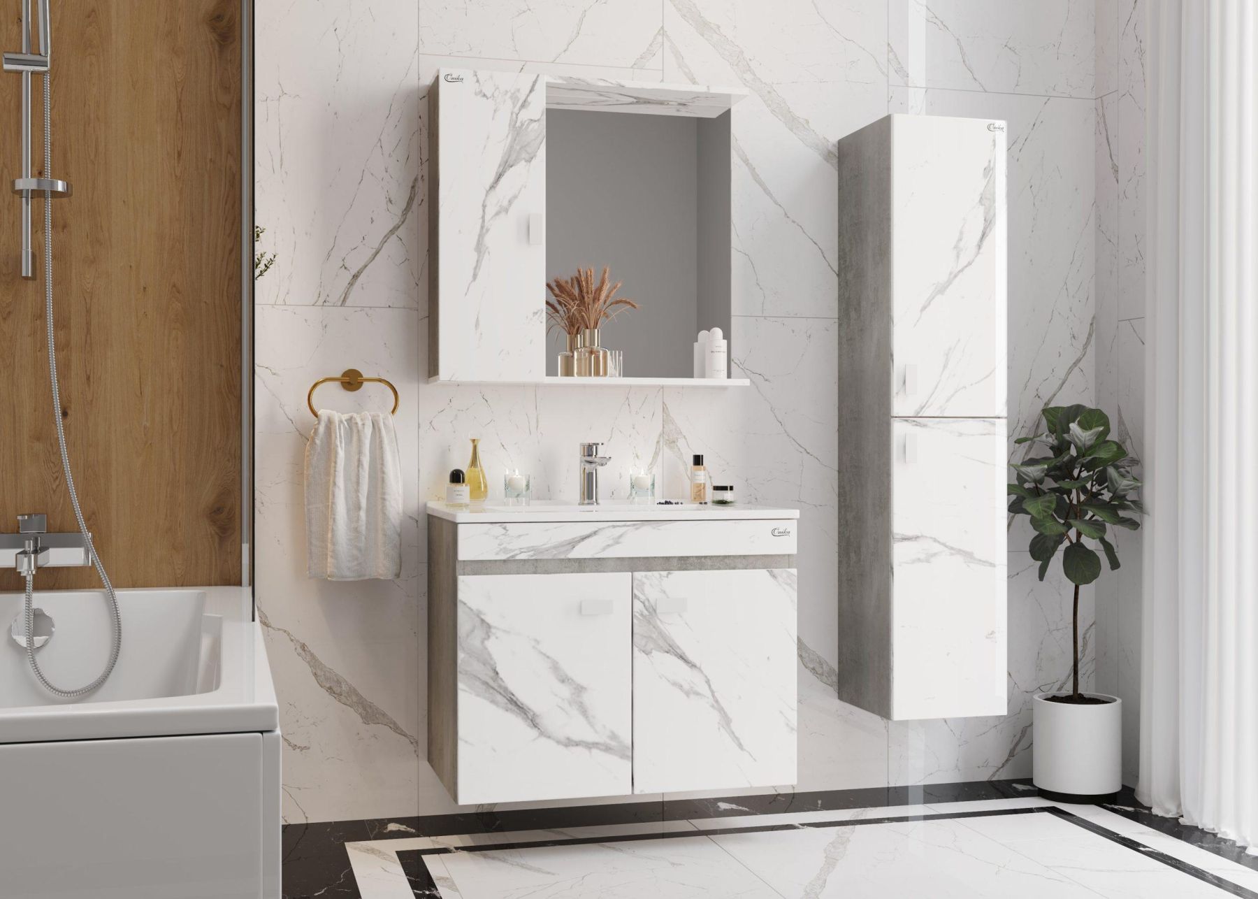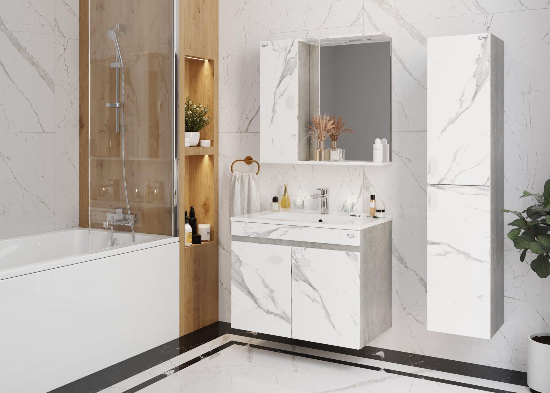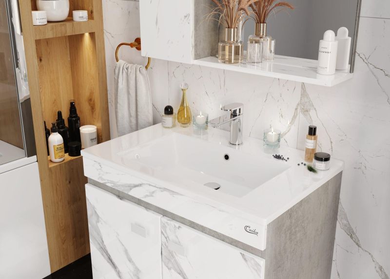 Подвесная тумба Onika Марбл 75 станет стильным и функциональным элементом пространства современной ванной комнаты. Спроектированная дизайнерами в минималистичном облике, тумба отражает самые актуальные расцветки сезона - бетон и мрамор.
