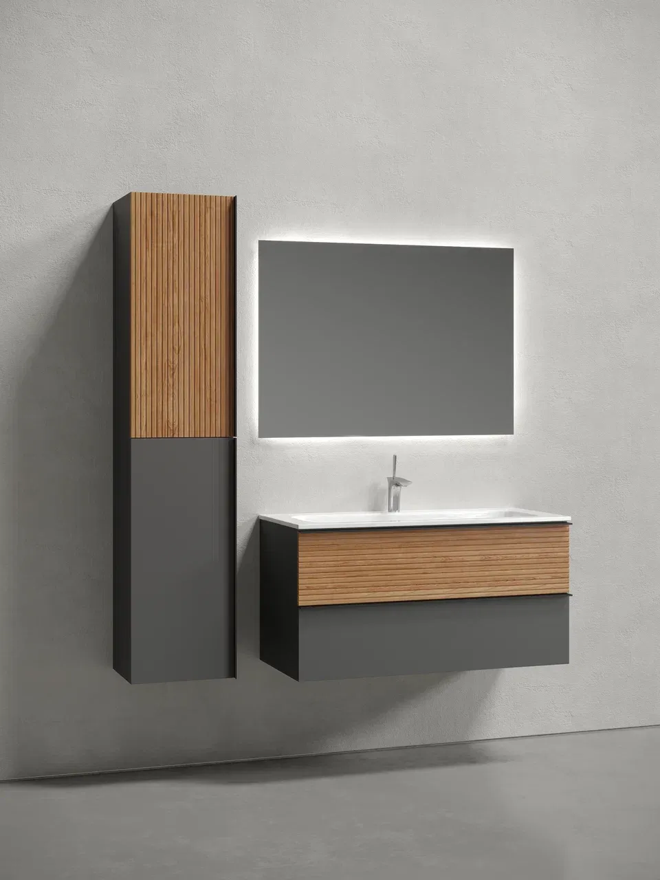 Подвесная тумба под раковину Sancos Delta DL100GR 100см дуб красный/графит