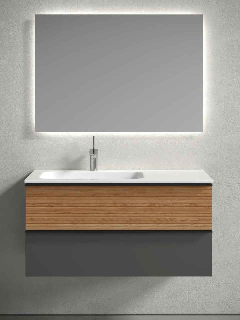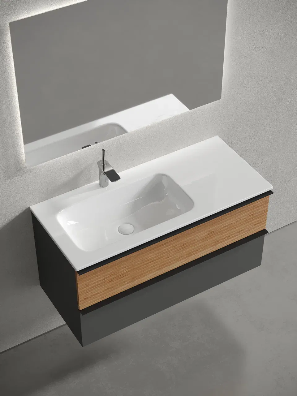 Подвесная тумба под раковину Sancos Delta DL100LGR левая 100см дуб красный/графит купить