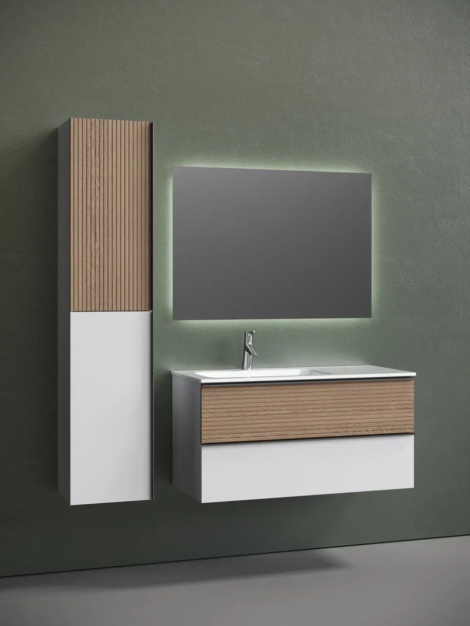 Подвесная тумба под раковину Sancos Delta DL100LW левая 100см дуб светлый/белый купить