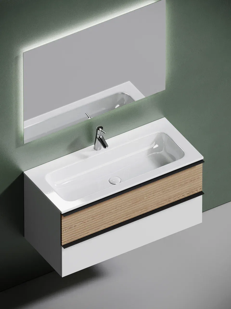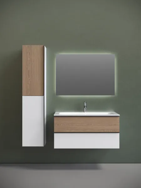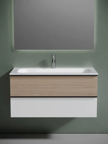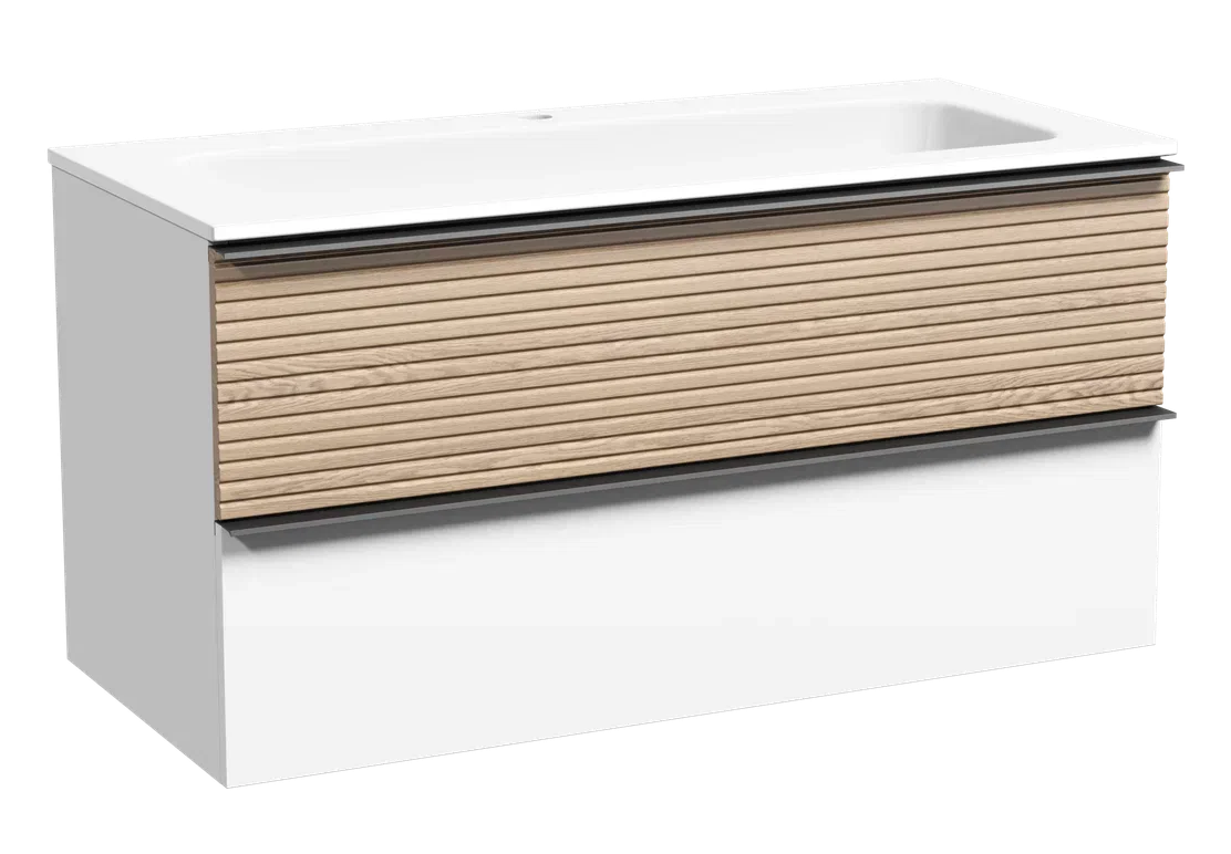 Подвесная тумба под раковину Sancos Delta DL100W 100см дуб светлый/белый