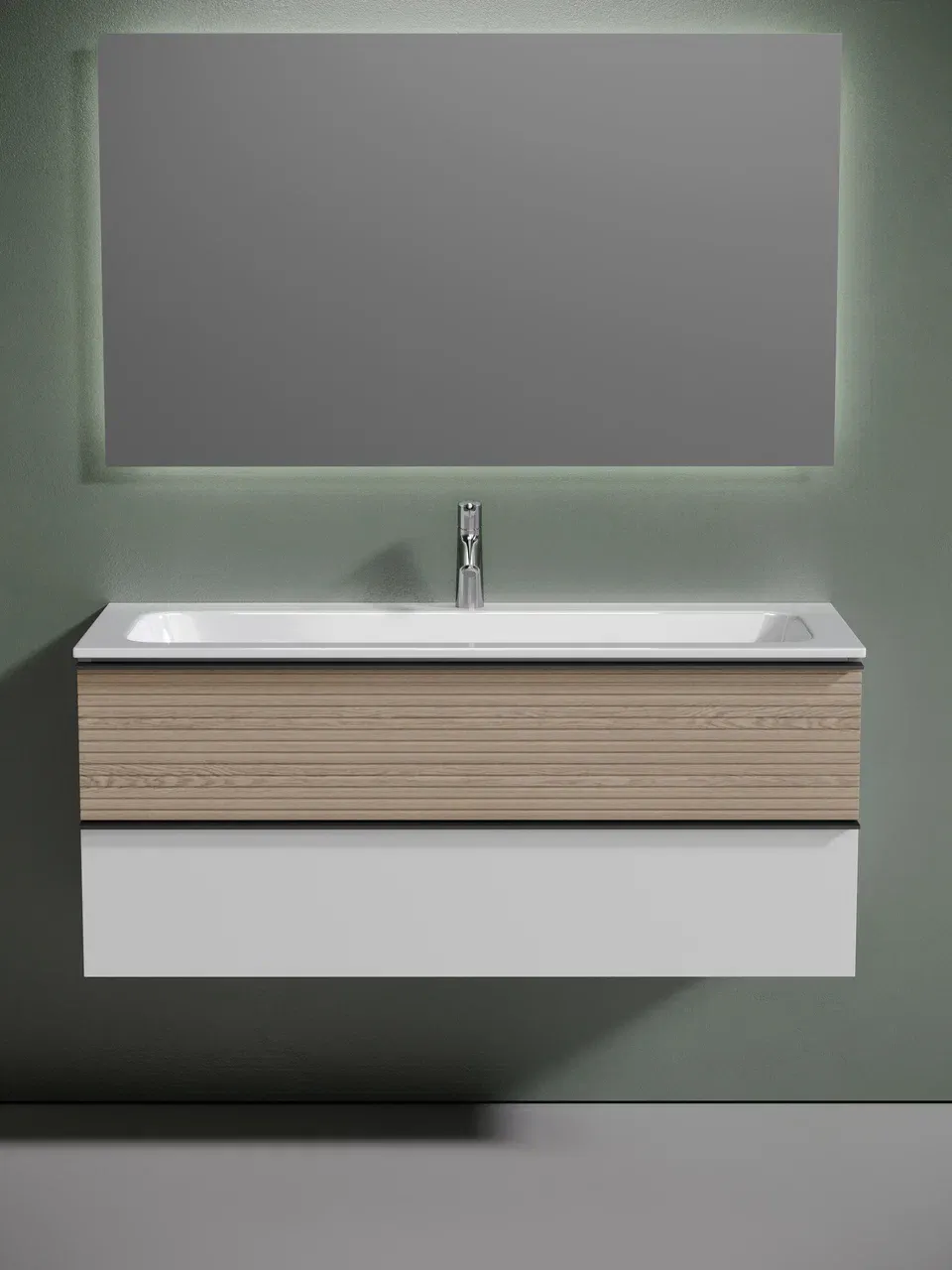 Подвесная тумба под раковину Sancos Delta DL120W 120см дуб светлый/белый