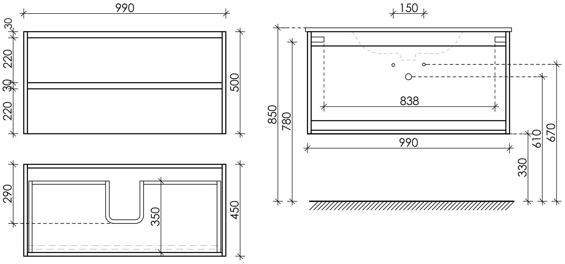 • Размер: Ш99 x Г45 x В50 см