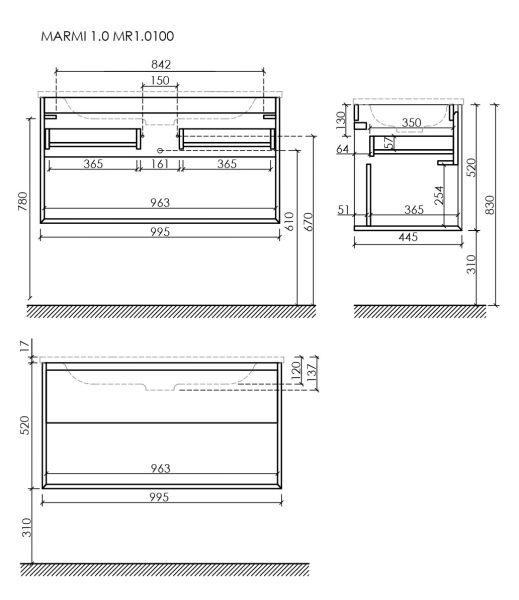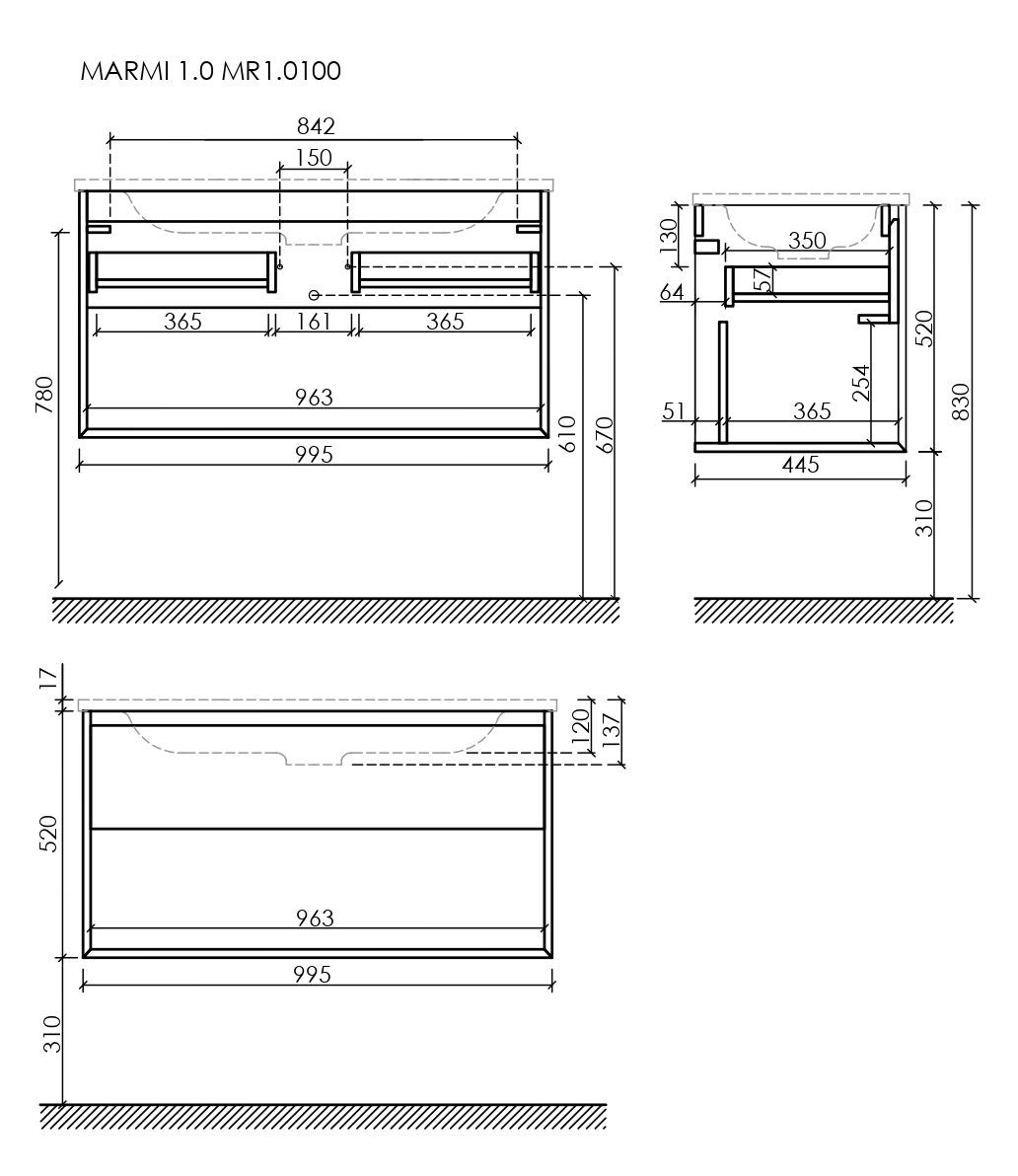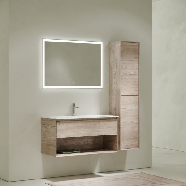 Тумба подвесная SANCOS Marmi 1.0 995х445х520 c одним ящиком оснащенным доводчиками скрытого монтажа с системой Soft close (плавного закрывания) и открытой нишей, c фрезерованной ручкой по всей длине фасада, дуб галифакс натуральный, арт. MR1.0100EG