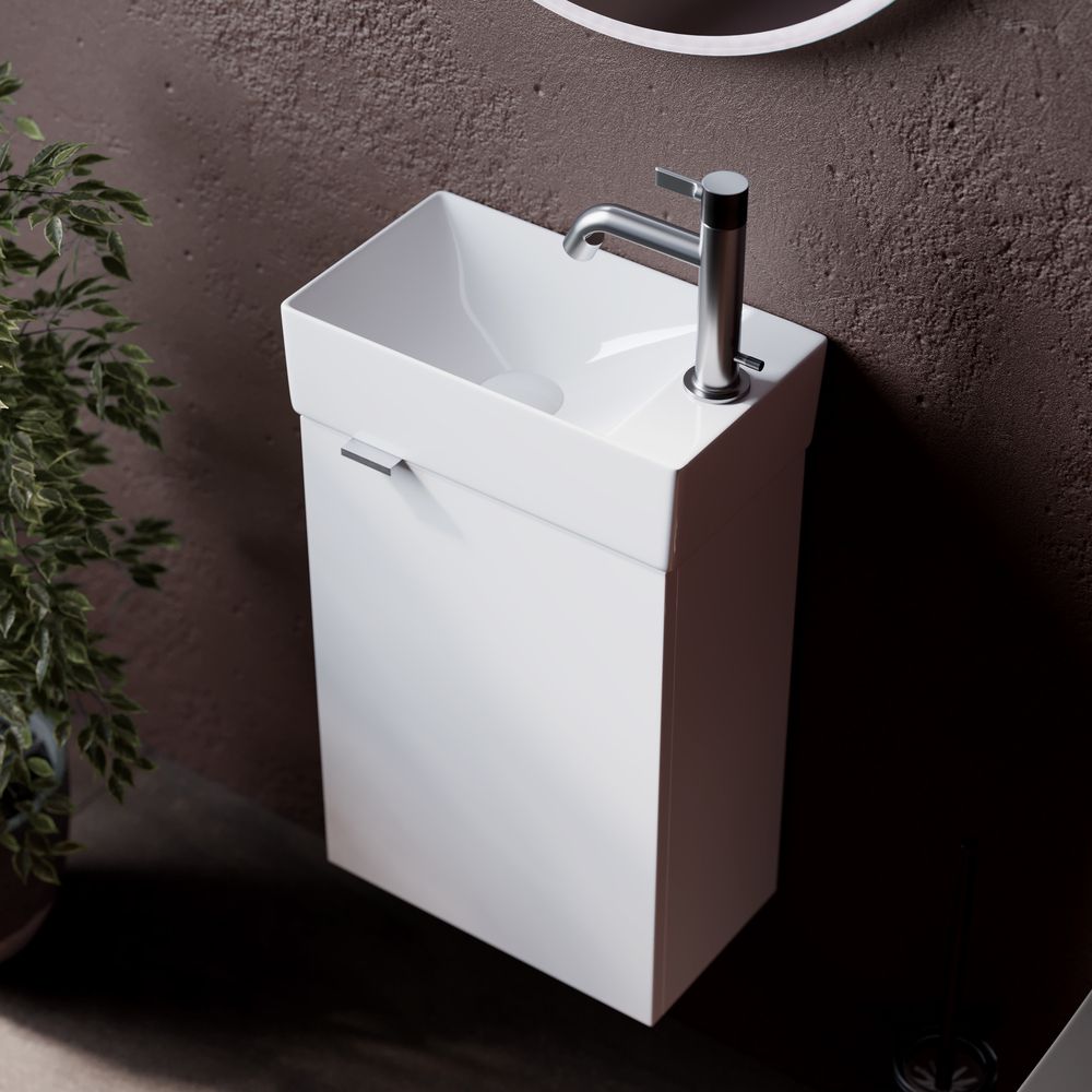 Подвесная тумба под раковину Sancos Mini MN35WR правая 35см белый глянец