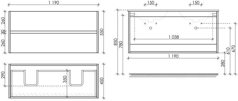- Размер: Ш119 x Г45 x В55 см