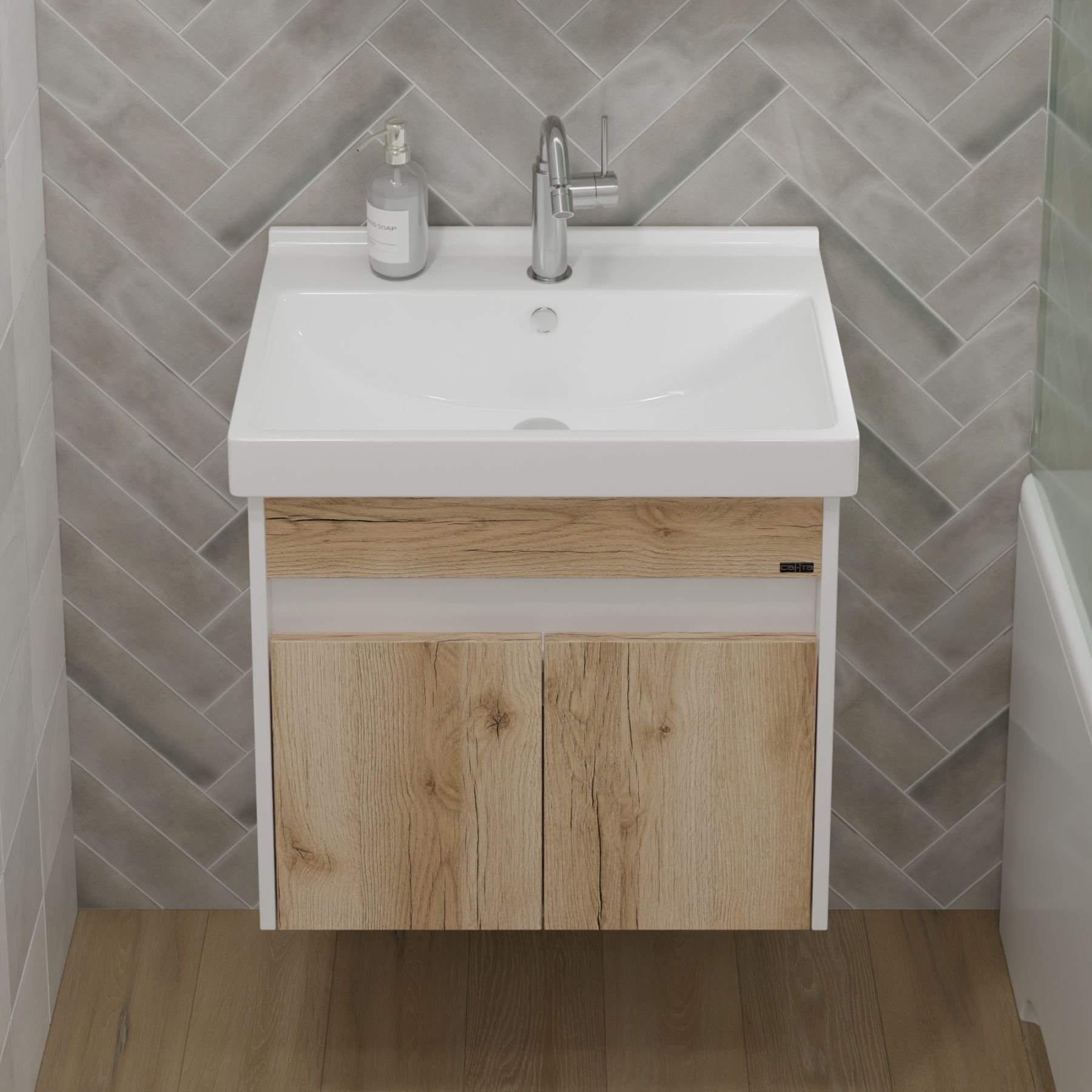 Подвесная тумба под раковину Санта Мира 700477 60 см дуб австрийский/белый