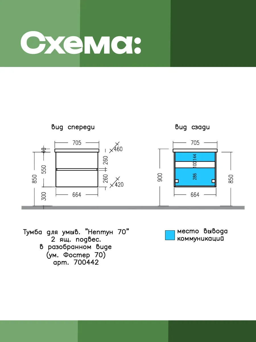 Современная и практичная подвесная тумба «Нептун 70» - идеальное решение для обустро... Подробнее