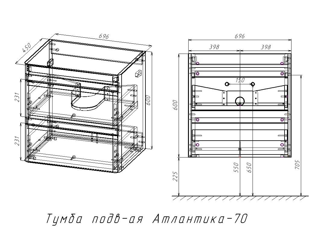 Тумба под раковину Style Line Атлантика 70, СС-00002341, 70 см, подвесная, Люкс Plus, ясень перламутрРаковина приобретается отдельно.