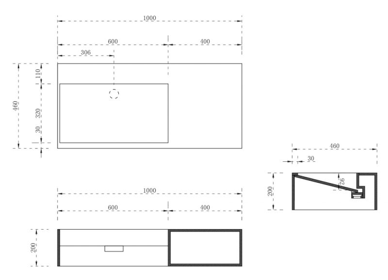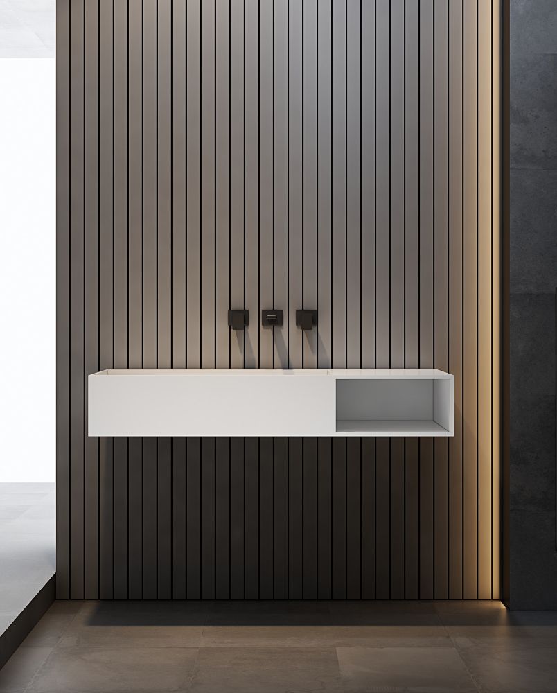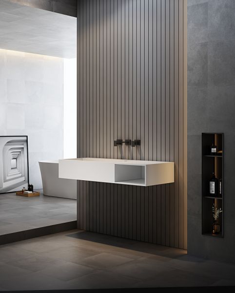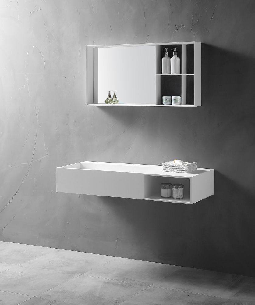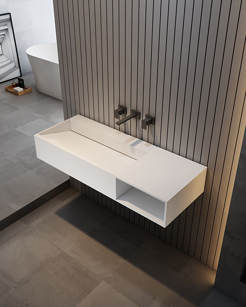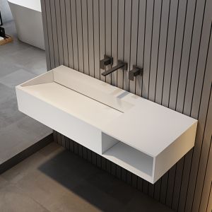 Подвесная тумба с раковиной ABBER Stein-1.0 R правая 100см белый матовый