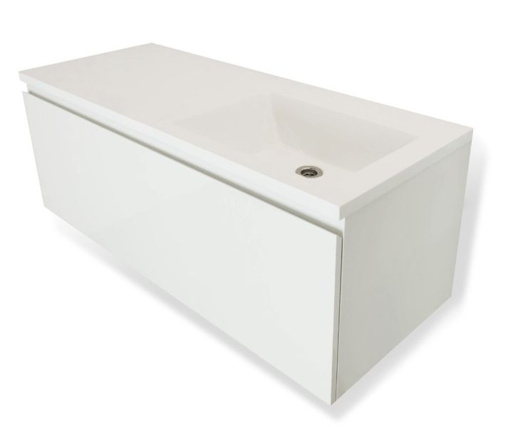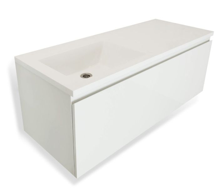 Мебель выполнена из влагостойкого ЛДСП и качественного MDF с использованием эмали RENNER (Италия). Ящики снабжены системой плавного закрывания. Для мебели используется фурнитура BLUM (Австрия)