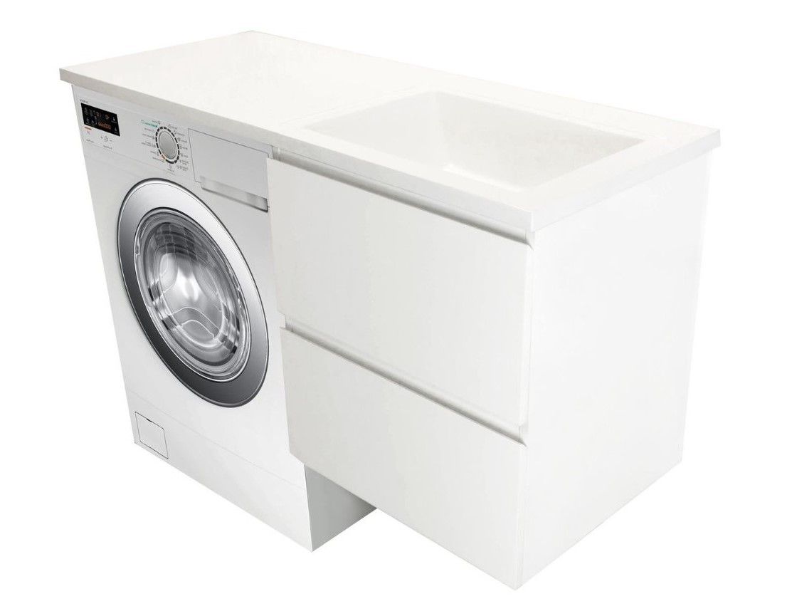 Коллекция мебели для ванной комнаты Dallas Luxe покоряет своей удивительной простой и функциональностью. Стильная лаконичная тумба, укомплектована раковиной из литьевого мрамора с удобной чашей. Стиральная машина устанавливается под столешницей, за счет чего экономит место в ванной комнате. В тумбе имеются два ящика. Нижний ящик тумбы – широкий и вместительный – предназначен для крупных предметов, а в верхнем имеется специальная организация пространства, позволяющая хранить мелкие вещи.