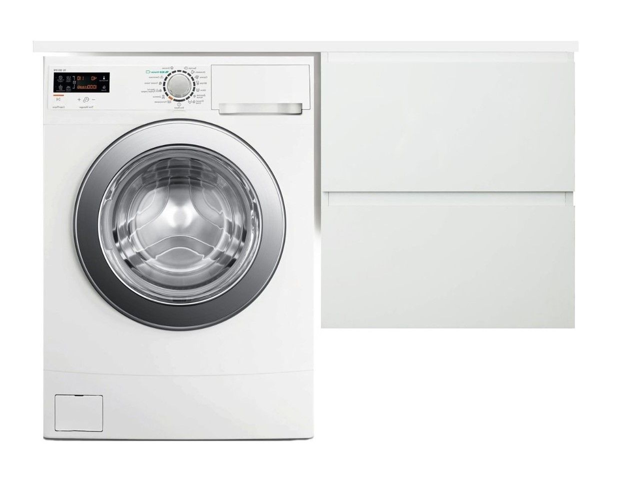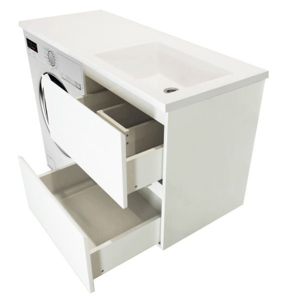 Коллекция мебели для ванной комнаты Dallas Luxe покоряет своей удивительной простой и функциональностью. Стильная лаконичная тумба, укомплектована раковиной из литьевого мрамора с удобной чашей. Стиральная машина устанавливается под столешницей, за счет чего экономит место в ванной комнате. В тумбе имеются два ящика. Нижн