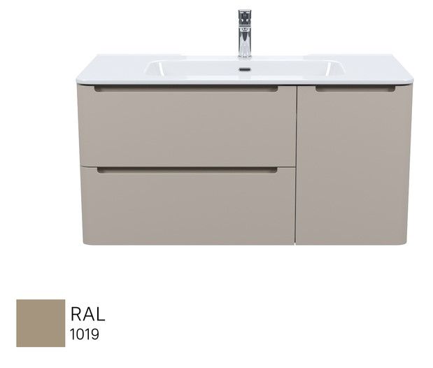 Вместительная подвесная тумба с плоским умывальником Edifice в теплом оттенке капучино – воплощение современного минимализма. Мягкие линии корпуса в сочетании с удобными интегрированными ручками выглядят свежо и актуально. Смотрится аккуратно, легко и не усложняет процесс уборки в ванной благодаря подвесной конструкции.